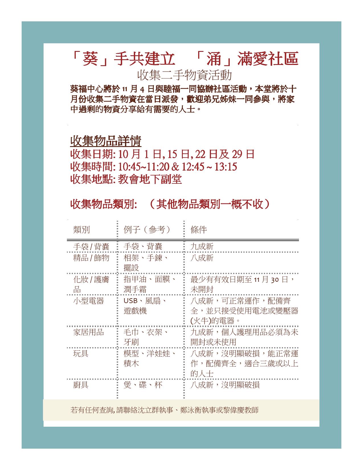 「葵」手共建立,「涌」滿愛社區 - 收集二手物資活動